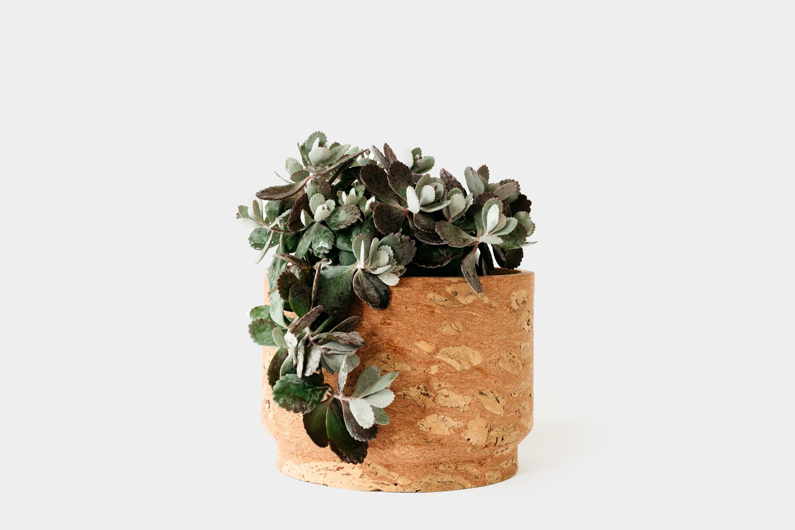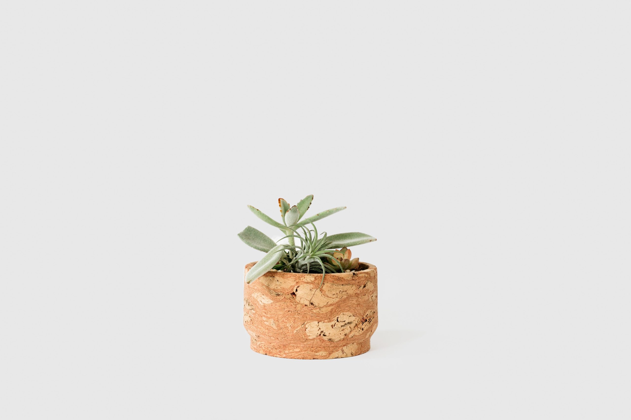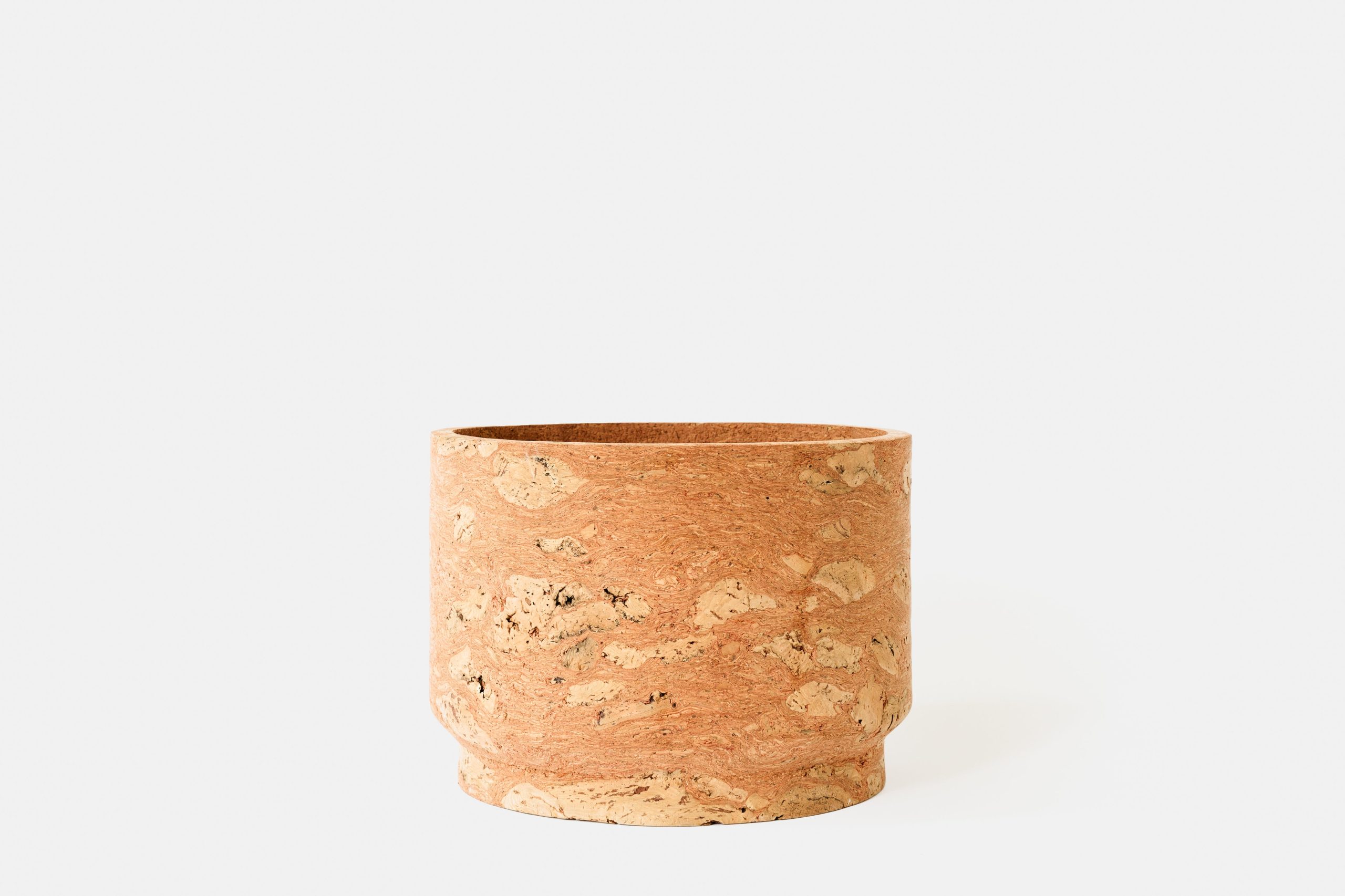 Hand-turned pink marbled cork planters designed for indoor use. These planters were inspired by vintage planters from the 1960s. Cork is naturally porous, making it an ideal material for plants. Each planter has an oiled interior and is finished on the outside with natural beeswax.